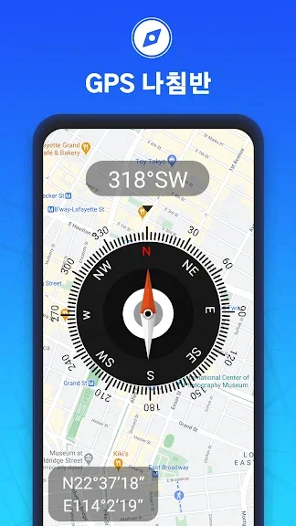 GPS 나침반 탐색 : 높은 정밀도의 디지털지도 나침반을 사용하여 올바른 방향을 쉽게 찾을 수 있습니다.