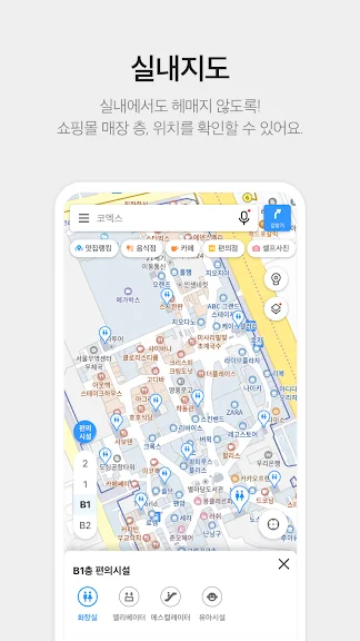 보행자용 턴바이턴 내비게이션 서비스를 제공합니다. 음성으로 안내하여 목적지에 쉽게 찾아갈 수 있습니다.