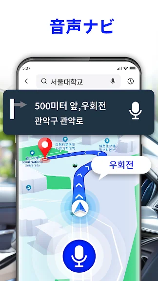 "500미터 직진 후 좌회전하세요." 스마트폰의 지시를 확인하며 경로에서 벗어나지 않도록 주의하세요. 이 무료 음성 내비게이션 GPS 오프라인 덕분에 이제 운전에 집중할 수 있습니다.