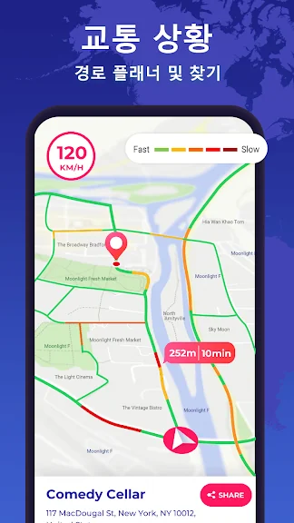 GPS 경로 찾기 및 경로 플래너-지도에 교통 정보를 표시하고 최단 경로를 계획합니다. 이 GPS 내비게이션지도 앱을 사용하는 동안지도에서 두 위치 사이의 거리와 시간을 계산하고 자세한 가이드와 함께 목적지까지 단계별로 안내합니다.