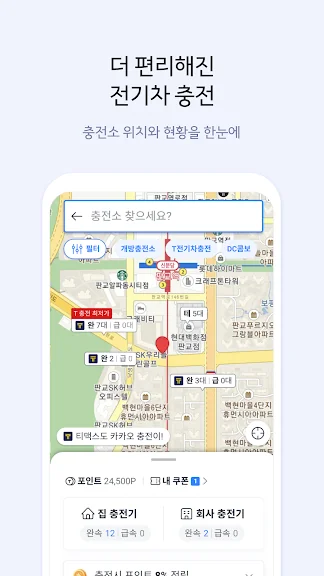 - 전국 5만기 이상의 충전기를 카드 없이 TMAP으로 이용할 수 있어요.