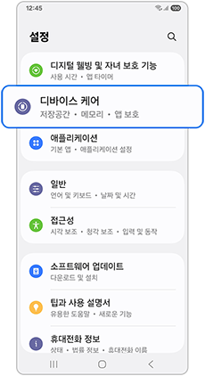 1단계) 설정으로 진입하여 디바이스 케어를 선택하세요.