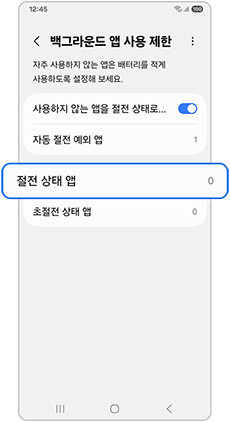 2단계) 백그라운드 앱 사용 제한으로 진입 후 절전 상태 앱을 선택하세요.