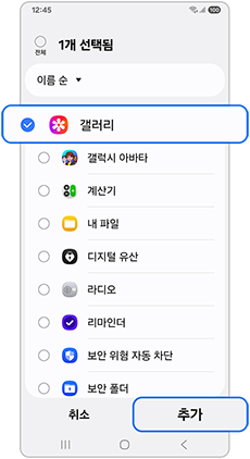 3단계) ''+” 를 눌러 사용빈도가 낮은 앱을 추가 하세요.