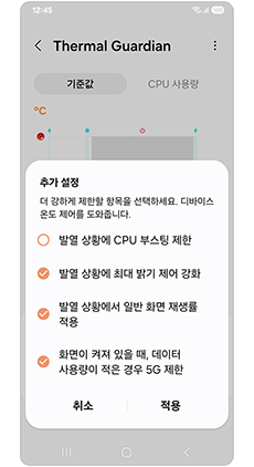 갤럭시 기기의 온도 기준값을 직접 설정하여 온도를 관리할 수 있습니다.