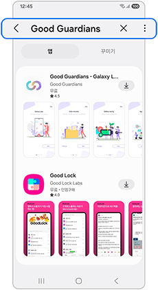 갤럭시 스토어(Store)를 실행 후 "Good Guardians" 앱을 검색하여 설치하세요.