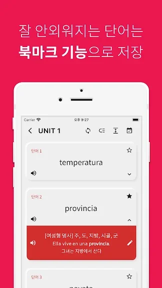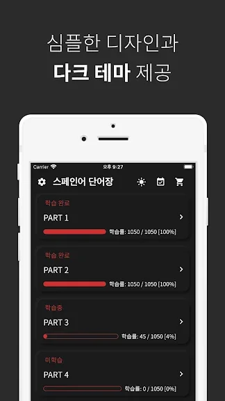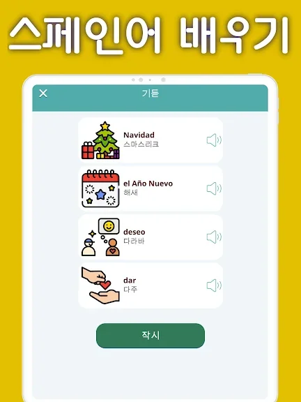 아래는 스페인어 단어장 어플에 대한 스크린샷 정보입니다.