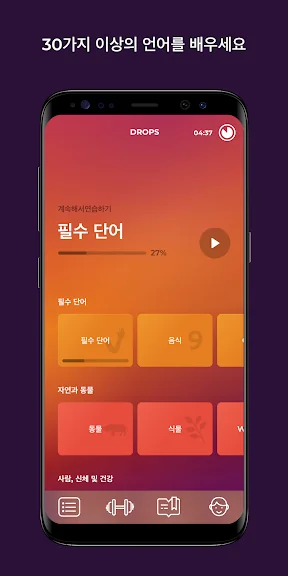 새로운 언어를 배울때 즐거움을 느껴 본 적이 있나요? 이제 느낄수 있을 겁니다! Drops은 언어 교육의 혁신적인 접근방법입니다. Drops는 어휘공부에서 지겨움을 제거했습니다!