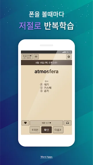 하루에 참 여러 번 폰을 열어보게 됩니다. 그 때마다 무심결에라도 단어를 보세요.