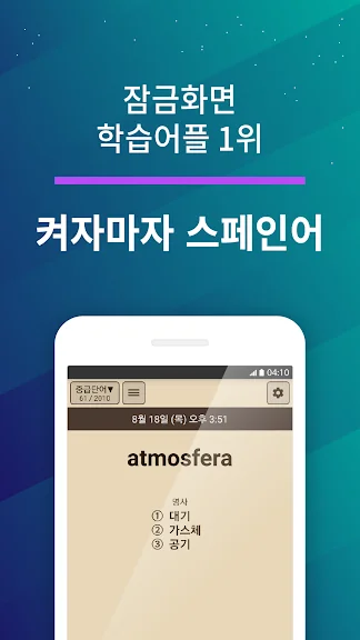 - 바쁜 출퇴근길에도 편하게! 휴대폰 잠금 화면에서 단어장을 바로 학습할 수 있어요.