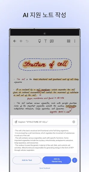 - 직관적인 제스처를 이용해서 끊김 없이 메모를 편집하고 서식 내용을 지정할 수 있습니다.