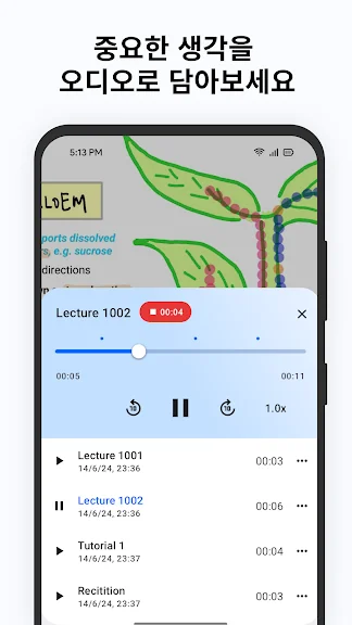 - 녹음 지원, 녹음하는 동안 메모하고 원하는 대로 재생