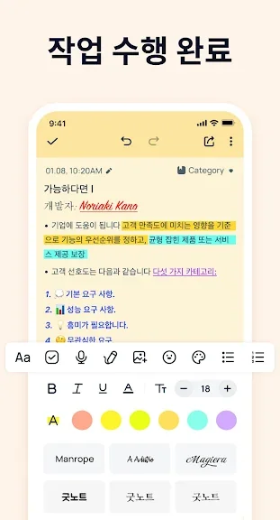 - 다양한 색상, 모양, 이미지를 활용하여 나만의 노트를 만들어보세요. 이제 최고의 수업노트나 회의노트를 다채롭고 재미있게 작성해보세요!