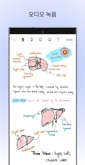 - 녹음 지원, 녹음하는 동안 메모하고 원하는 대로 재생