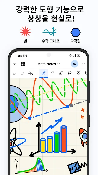 - 모양 도구와 모양 인식 도구를 사용하여 완벽한 모양과 선을 그려 노트를 풍부하게 만드세요.