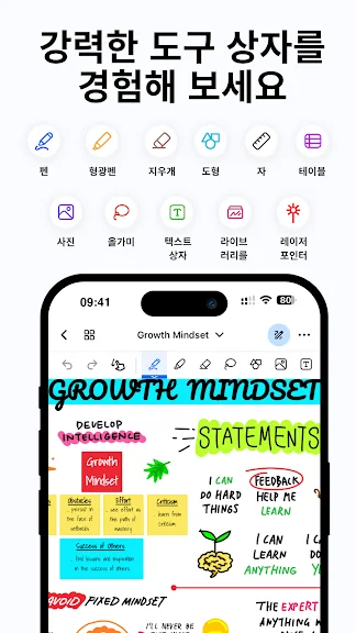 • 다양한 펜, 형광펜, 선 스타일로 필기 도구를 사용자 정의하고 정밀한 제어를 위한 압력 감도를 지원합니다.