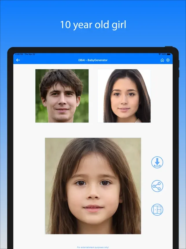 - 미래아기얼굴 예측: 아기 얼굴 생성기 기능으로 당신과 파트너의 사진을 기반으로 하는 미래 아기 얼굴을 예측합니다. 매 순간이 새롭고, 웃음을 자아내는 결과를 경험하세요.