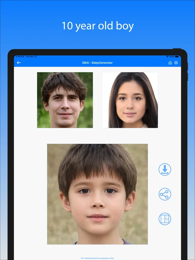 멋진 미래얼굴 미래아기얼굴 예측 로 놀라운 늙은 내 모습 노화어플, ai 프로필 얼굴 합성 을 시도해 보세요! ai베이비 얼굴분석, 미래의 내 얼굴 노인얼굴 어플 및 ai 프로필 얼굴 합성 으로 ai ps2 캐릭터를 만드세요! AI 웨딩 사진을 생성하고, AI로 임신 사진 촬영을 만들고, 베이비페이스 your baby match my future baby face generator, 미래아기얼굴 로 미래의 아이를 보세요! ai베이비페이스, 미래 아기 얼굴 예측: Cosplay 아기얼굴 아기, ai베이비 2세 얼굴, 2세사진어플 로 미래에 제 아기가 어떻게 생겼는지 볼 수 있습니다! 겨울 웨딩 사진을 만들고, 헬스장 사진으로 피트니스 레전드가 되고, 60년대로 돌아가 데이트 사진 촬영을 하세요! 툰필터 로 만화사진 을 만들고 미래의 내 얼굴 노화어플 로 50년후의 내모습 를 보세요! 아기얼굴생성기 – 미래의 아들이나 딸이 어떻게 생겼을까요?