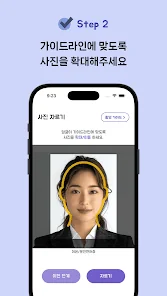 한국 신분증, 여권, 비자나 라이센스를 위한 공식 사진 사이즈가 앱에서 제공되고 있습니다. 유효하지 않은 여권 사진의 종류 예시 역시 무료로 제공됩니다.