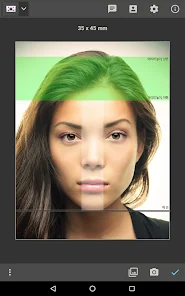 여권 사진을 만드려면 사진을 카메라에서 촬영하거나 앨범에서 불러옵니다. 다음 단계는 손가락으로 멀티 터치 동작 (위치 조정, 확대 및 축소, 회전)을 수행해 사진을 조정하는 것입니다.
