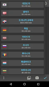 그 외에 캐나다, 인도 같은 많은 나라들의 증명사진이나 비자사진 사이즈 템플릿이 많습니다. 여권사진 크기 전체 목록이 애플리케이션에 있습니다.