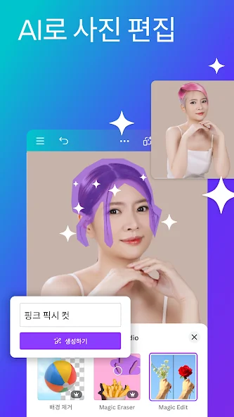 아래는 Canva - 사진 편집기, 동영상 편집기, 디자인 앱 어플에 대한 스크린샷 정보입니다.