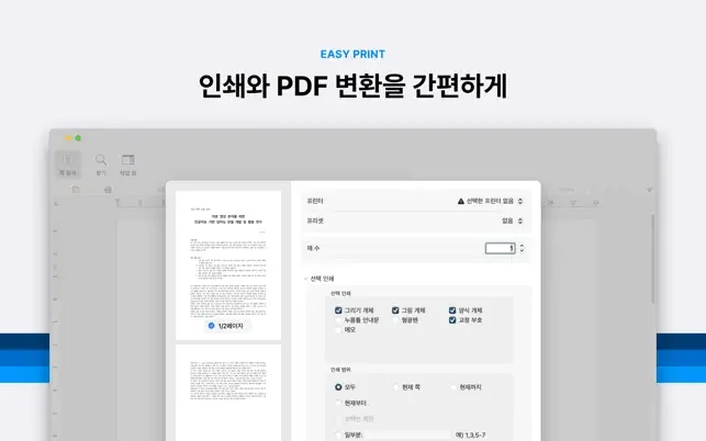 - 이제 PDF 저장이 가능합니다!!!(별도로 한글을 PDF로 변환하는 앱 대치 가능)